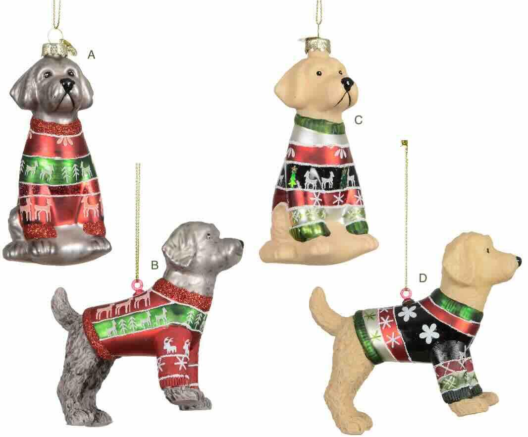 Julekugle Hunde med julesweater